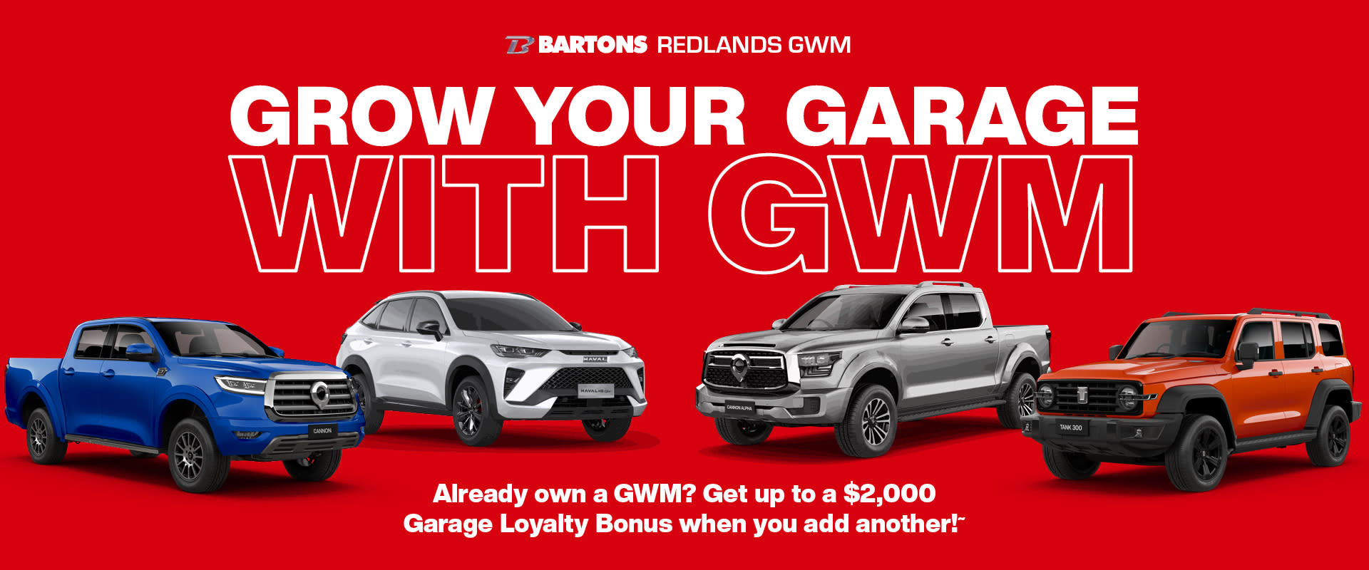 Support of $1000-$2000 (including GST) Garage Loyalty Bonus Continues for QTR1 (for private buyers who have another GWM in their garage).